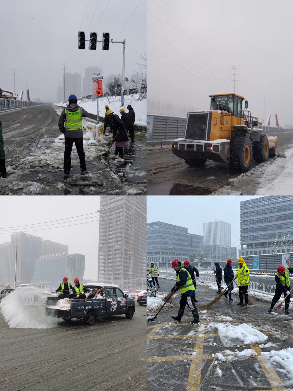 为了缓解道路积雪状况,保障群众出行安全,消除交通安全隐患。两个项目部以雪为令,闻雪而动,立即投入到扫雪除冰保道路畅通工作中,采取机械为主、人工辅助的清雪作业方式。在易滑车道进行撒盐除冰处理。摆放反光锥等交通标志,快速疏导滞留车辆并做好解释工作,提醒司乘人员减速慢行。宿松路项目部共计出动铲雪车6台,防滑垫300余条,应急人员132名,撒布融雪剂5吨。并加强与交管部门的配合,强化道路巡查,动态监控路情,多角度、全方位保障市政道路通行安全。确保了管段范围内的机动车及非机动车道行车安全。雨雪不休奋战不停,项目部将严阵以待,继续做好各项应急工作。全力以赴做好道路保畅工作,努力营造“路畅、车安、人和”的通行环境。
