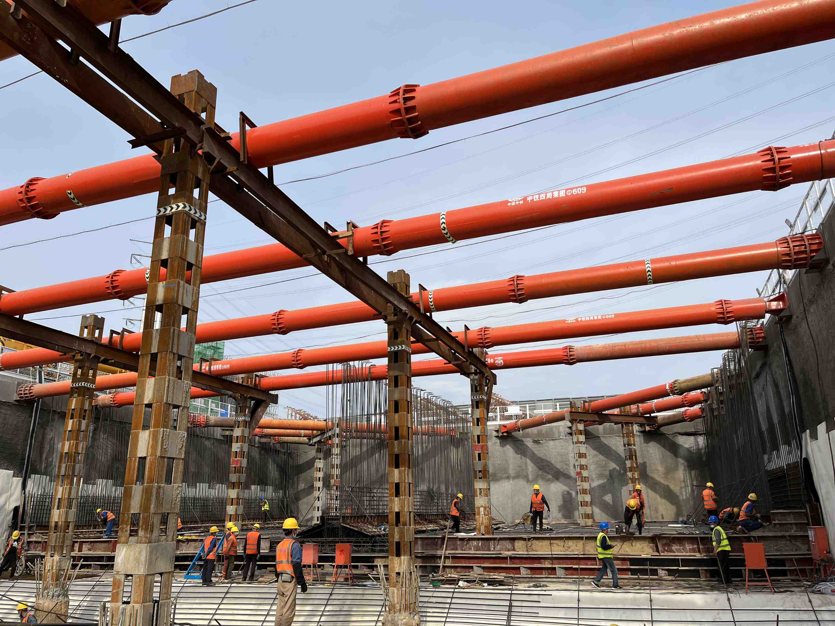 三月以来,城投公司克服多日阴雨、施工场地狭小等众多不利条件制约,科学组织、统筹谋划施工工序。项目管理团队从基坑土方开挖外运、防水卷材施工、钢筋绑扎、模板安装及止水带安装加固、混凝土浇筑等方面进行精心谋划。建设单位、监理单位、施工单位共同组织专项施工安全技术交底。使一线作业人员熟知各施工环节技术、质量控制要点,排除施工中存在的安全风险。同时,面对日益严峻复杂的疫情形势,一手抓疫情防控不松懈,一手抓项目建设不停歇,顺利完成了锦绣大道节点隧道首节混凝土浇筑,为后续施工积累了宝贵的经验。